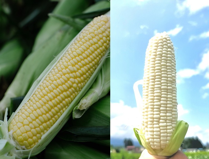 遂にファームかずとの名物野菜フルーツコーン「ゴールドラッシュ」と新たに仲間入りしたホワイトコーン「雪の妖精」がセットになって登場!